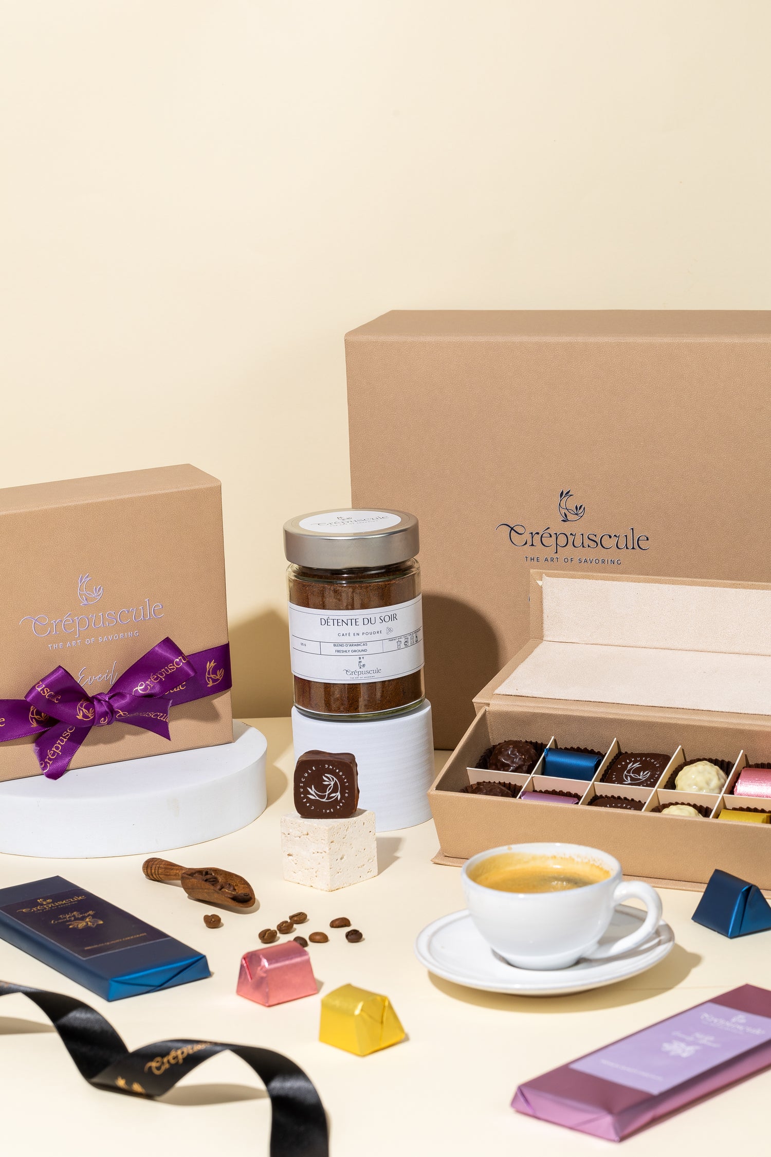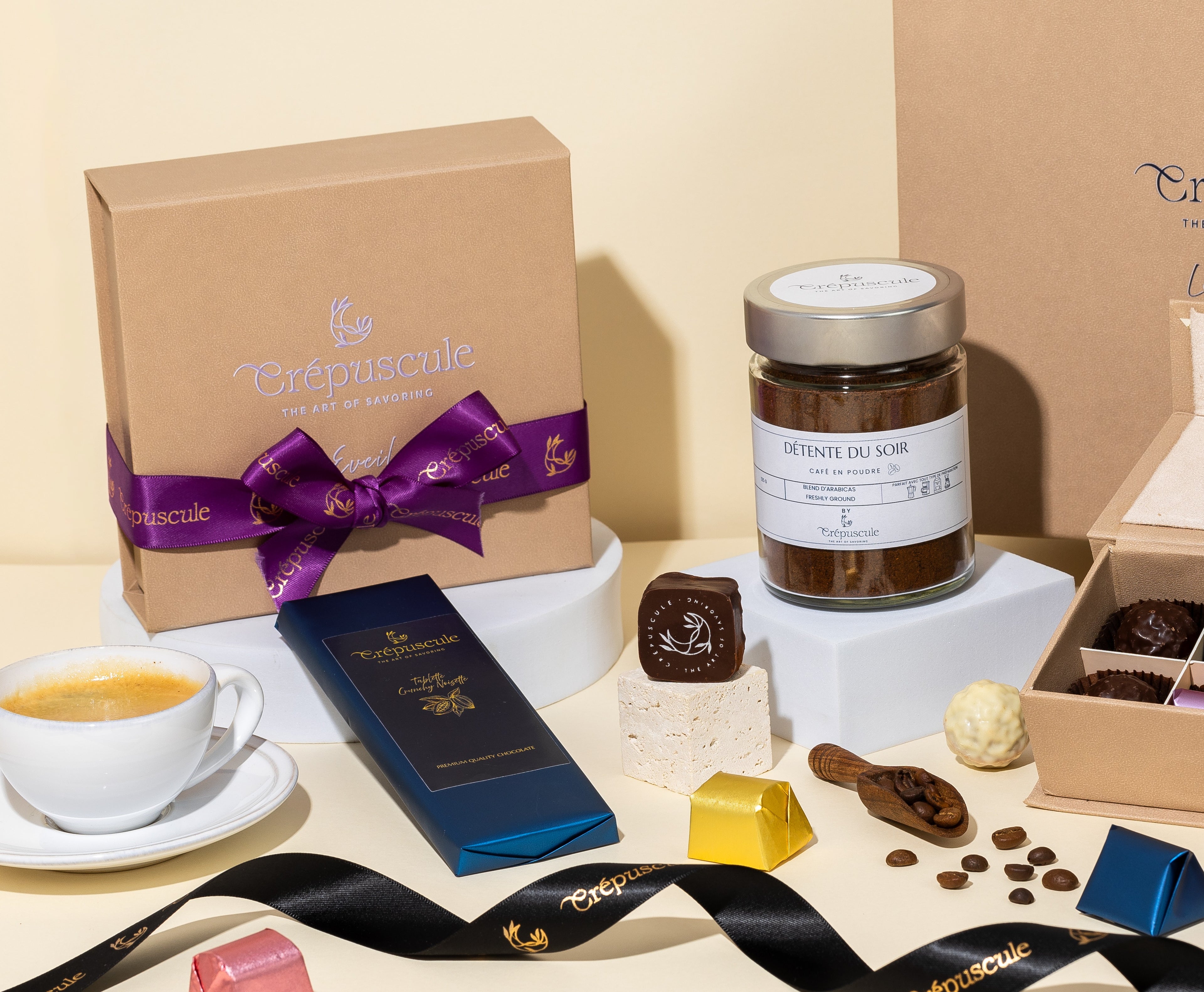 Crépuscule transforme le chocolat et le café en rituels sensoriels. Des instants suspendus, une expérience à savourer lentement.